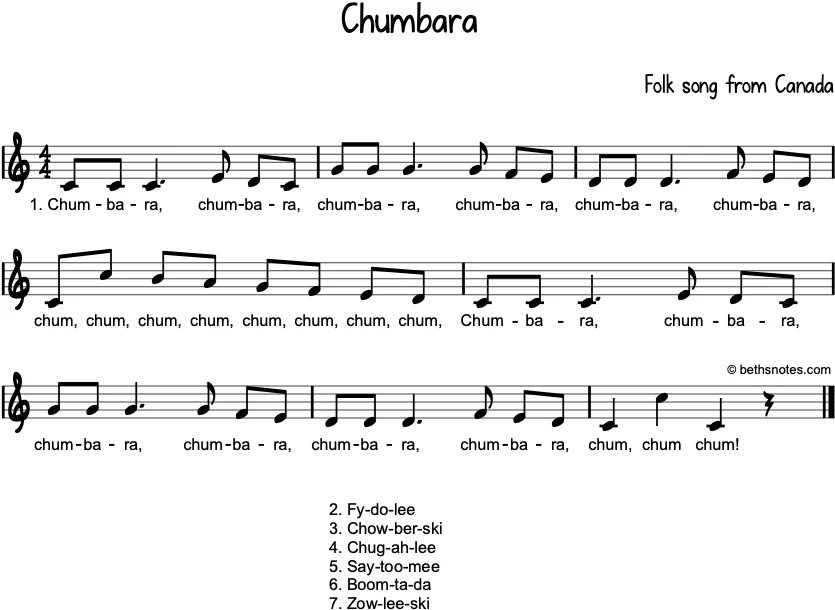 - PDF of song with chords + Lesson ideas + Orff arrangement