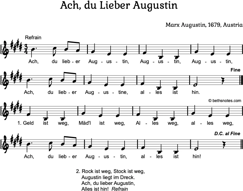 Ach, du lieber Augustin, Augustin, Augustin,