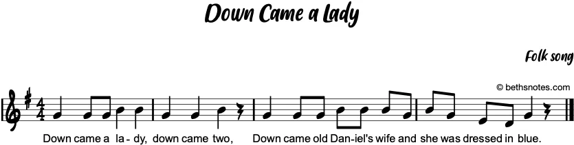 Down came old Daniel’s wife and she was dressed in blue.