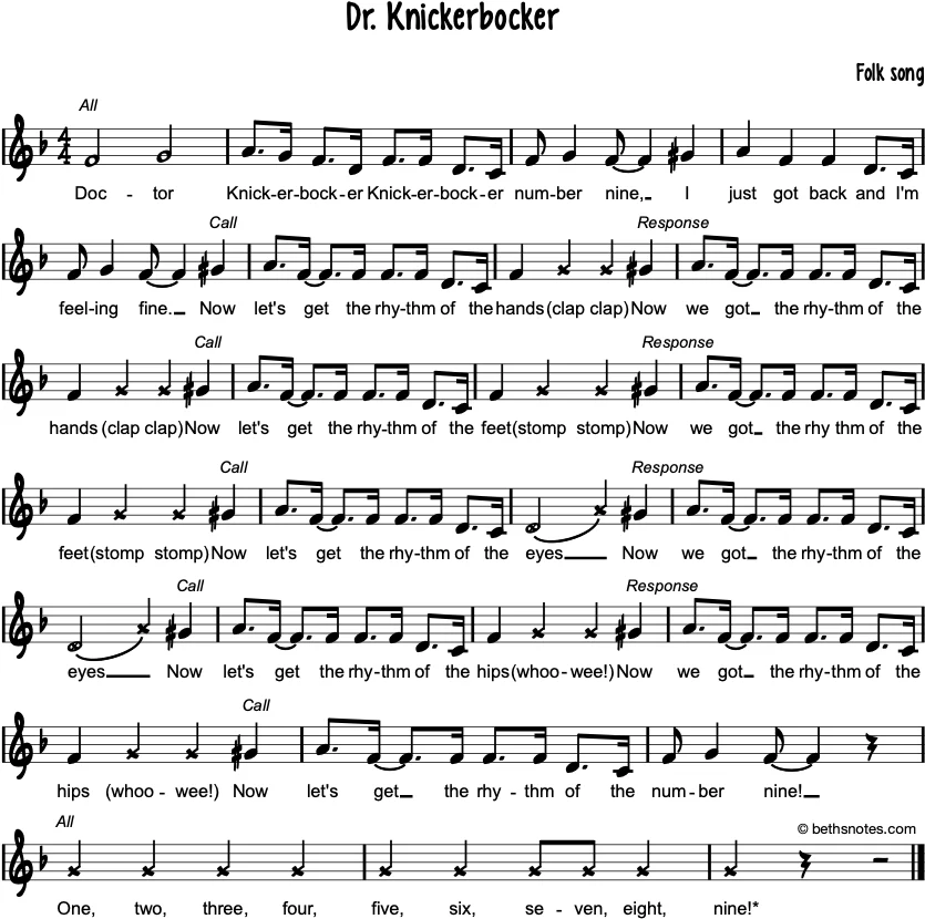 In Australia we sing – Dr Knickerbocker Knockerbocker number nine, he likes to dance and keep in time.