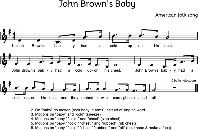 John Brown’s baby had a cold upon his chest, (repeat three times)