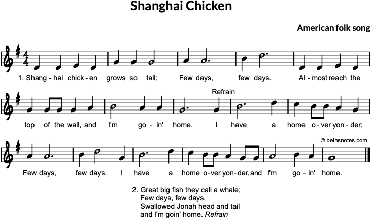 - Source: Silver Burdett Music, Early Childhood, Silver Burdett Company, 1981