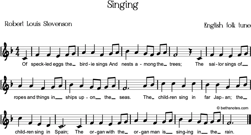 (English folk tune, Lyrics by Robert Louis Stevenson)