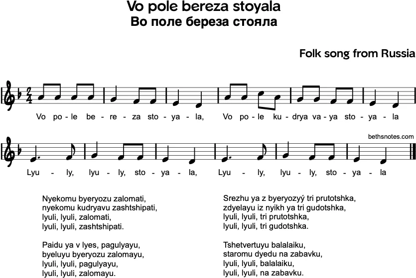 I learned this song in Russian first, and then I came across a simpler English version my first year teaching general music.