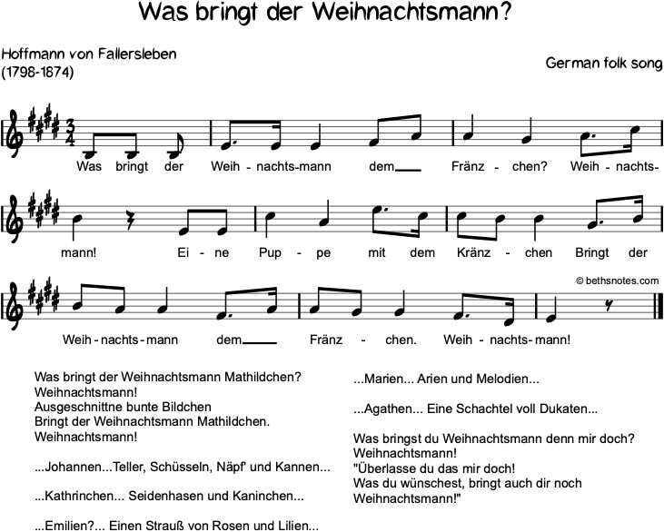 (German folk tune, Lyrics by Hoffman von Fallersleben, 1796-1874)