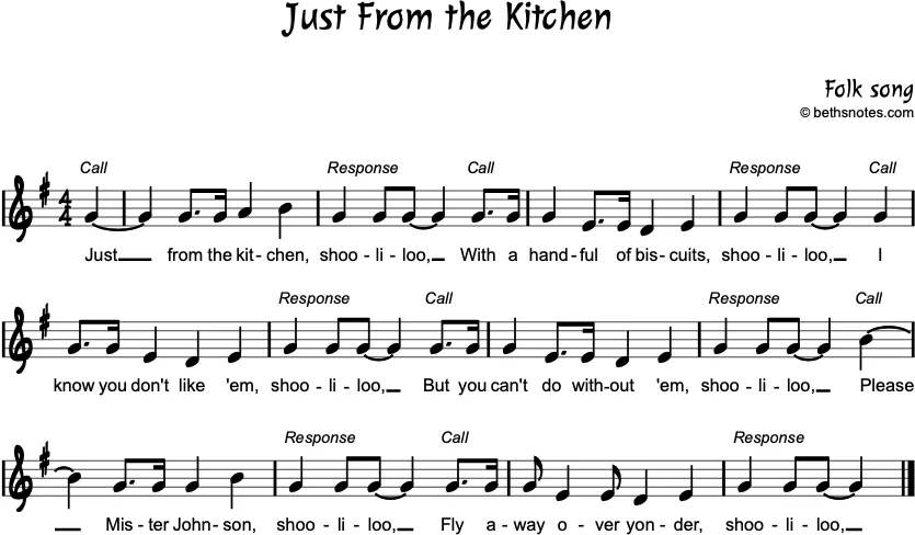 The Leader (student or teacher) sings the Call, and the class sings the Response. The Leader sings a student’s name instead of “Mr. Johnson,” and that student “flies” to join the other side of the circle. (If the students are standing, the student can just find a spot to stand between two students. If the students are sitting, have two students create an empty space between them where that student can sit.