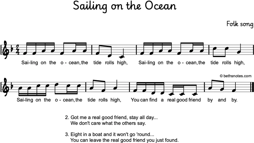 1. Sailing on the ocean, the tide rolls high,