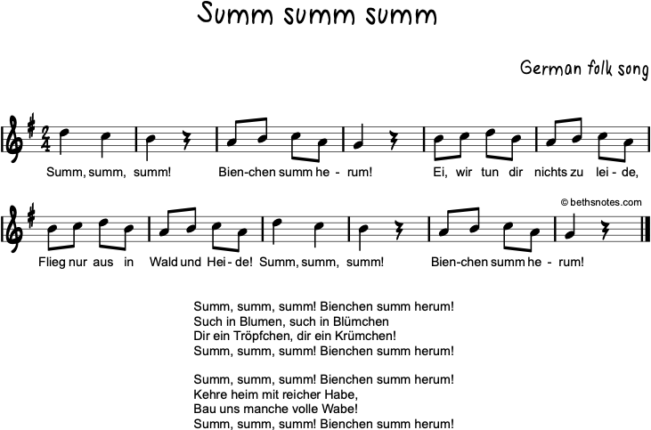 - Source: German Folk Songs, Arthur Kevess, Oak Publications, 1968
