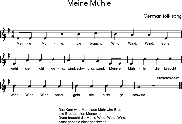 - Source: German Folk Songs, Arthur Kevess, Oak Publications, 1968
