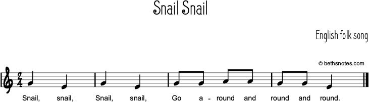 - Melody: mi so la / E,G,A