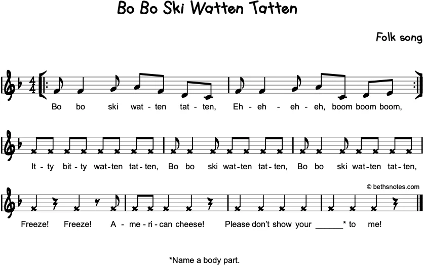*Name a body part. When students repeat the song, they hide that part of the body from their partners. Ideas: