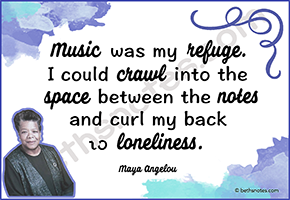 Music was my refuge. I could crawl into the space between the notes and curl my back to loneliness. – Maya Angelou
