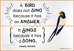 A bird does not sing because it has an answer. It sings because it has a song. – Chinese proverb