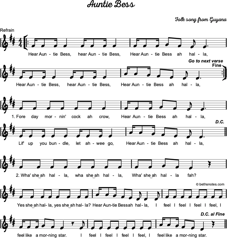 Hear Auntie Bess ah halla. (repeat)