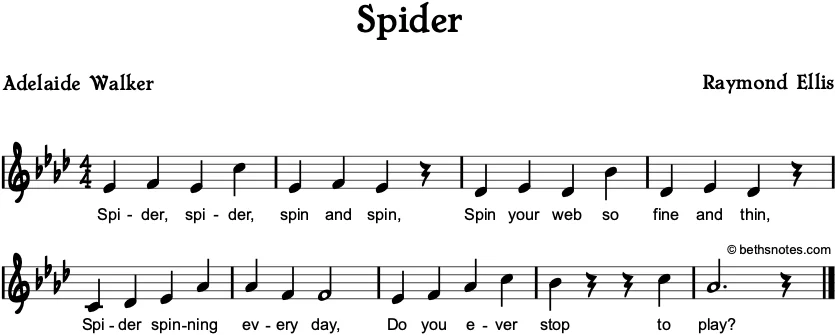 Spider, spider, spin and spin,Spin your web so fine and thin,Spider spinning every day,Do you ever stop to play?
