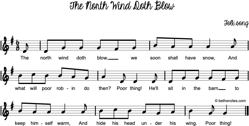 Lyrics (Folk song) The north wind doth (does) blow,We soon shall have snow,And what will poor robin do then? Poor thing!He’ll sit in the barn to keep himself warm,And hide his head under his wing. Poor thing! See also Subjects: ...