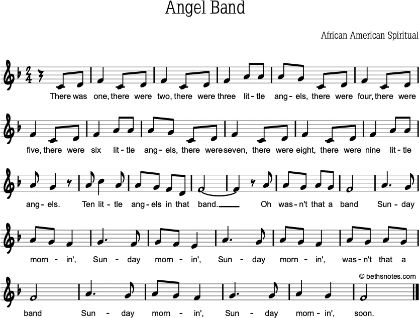 Lyrics (African American Spiritual) There was one, there were two, there were three little angels,There were four, there were five, there were six little angels,There were seven, there were eight, there were nine little angels,Ten little angels in that band. ...