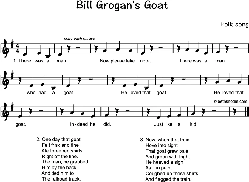 Lyrics (Folk song) 1. There was a man. (echo each phrase)Now please take note,There was a manWho had a goat.He loved that goat.Indeed he did.Just like a kid. 2. One day that goat (echo each phrase)Felt frisk and fineAte three red ...