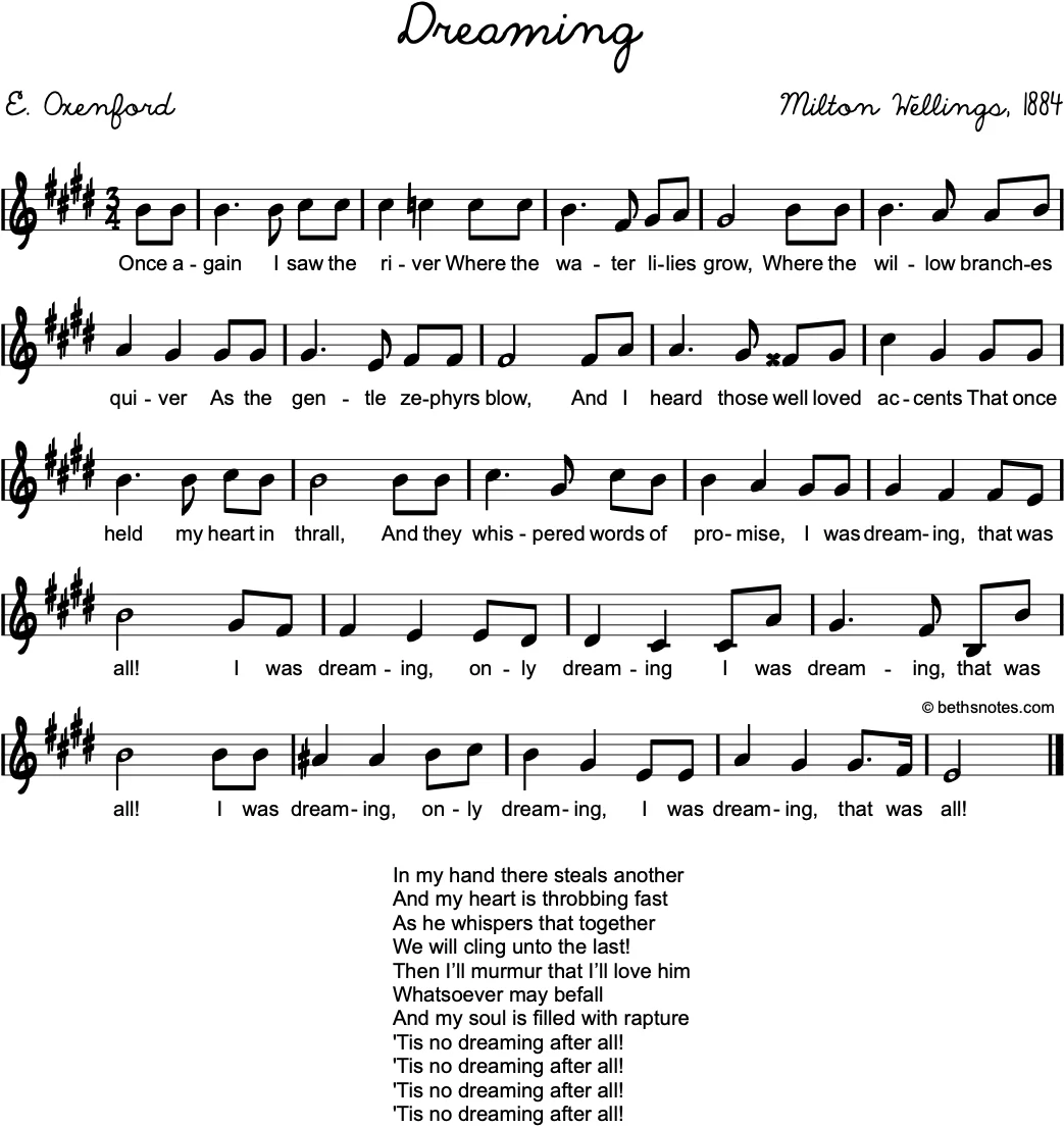 Lyrics (Melody by Adolf Weidig, Lyrics by May Morgan) Part II dreamt when I was practicing my exercises o’erA little mouse came creeping out and dancing on the floor,I thought his taste was very strange, I’d never caper so,For such ...