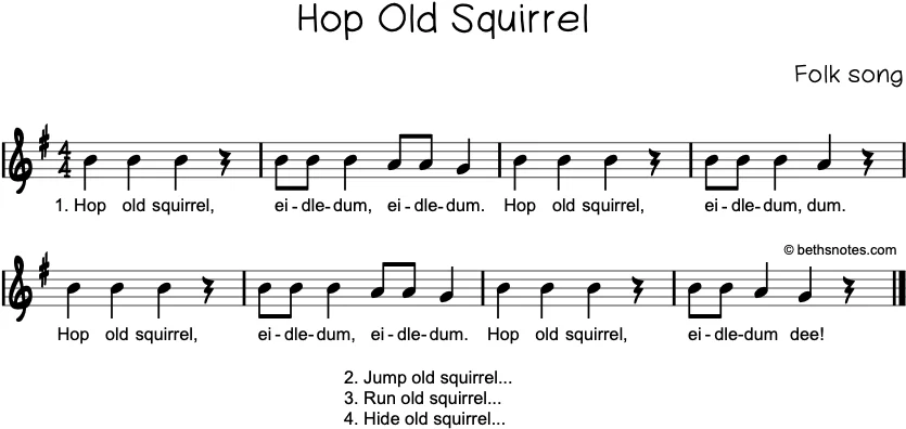 Lyrics (Folk song) 1. Hop old squirrel, eidledum, eidledum… 2. Jump old squirrel… 3. Run old squirrel… 4. Hide old squirrel… Game Formation: Students sit on the floor in a circle. Verse 1 – One student is the “squirrel” (“It”) ...